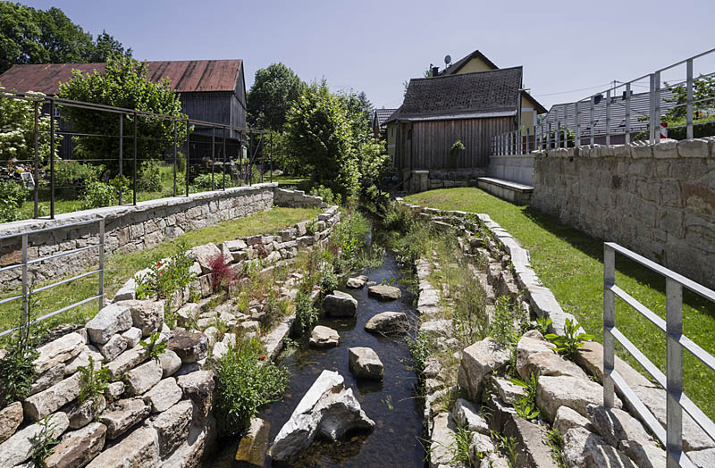 Der ehemalige Werkskanal, ein Seitenarm der Röslau, wurde freigelegt und zum Lebens- und Naturraum umgestaltet.